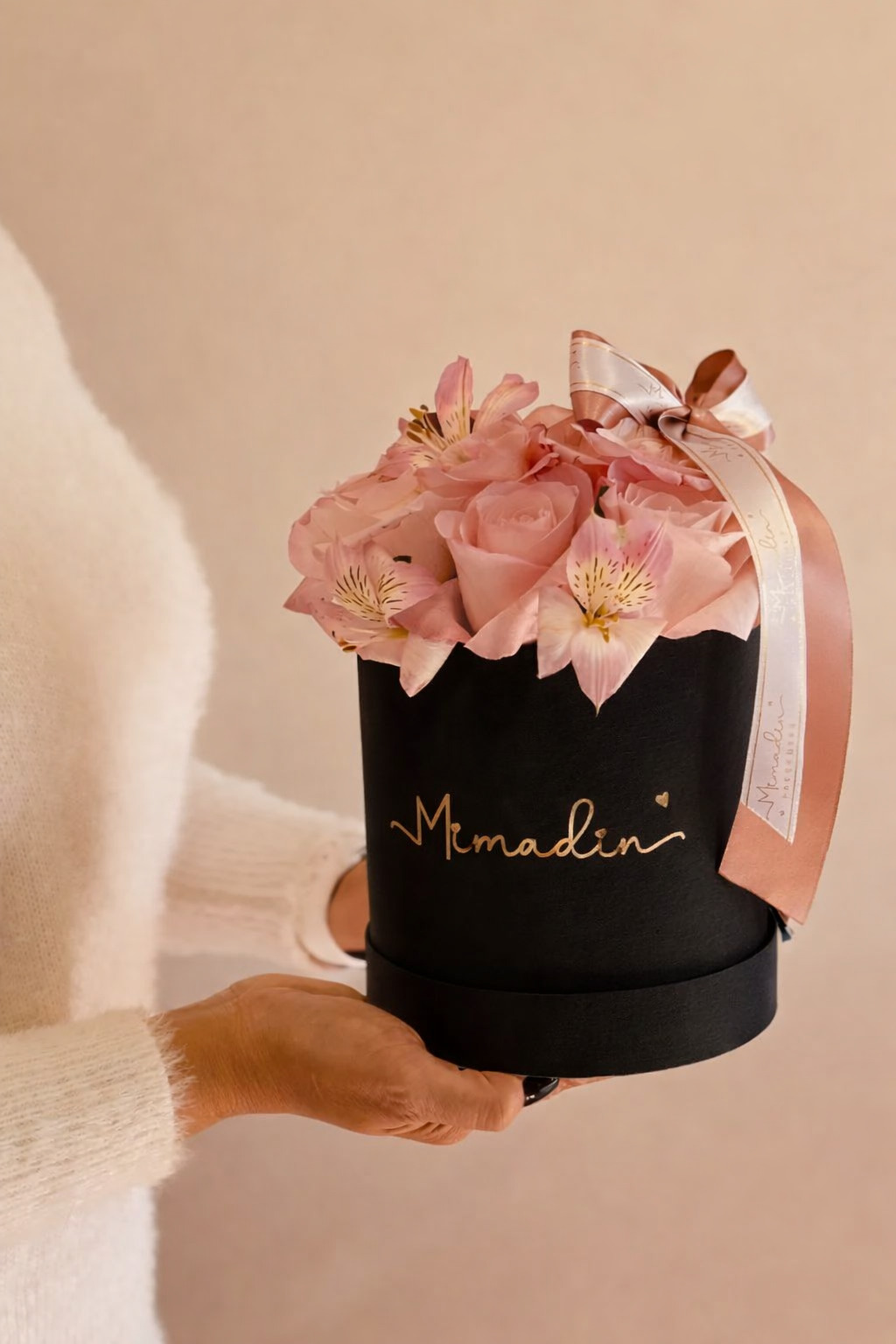 Linda caixa box com flores rosas delicadas. SURPREENDA alguém especial! Acompanha recadinho personalizado e muito carinho.