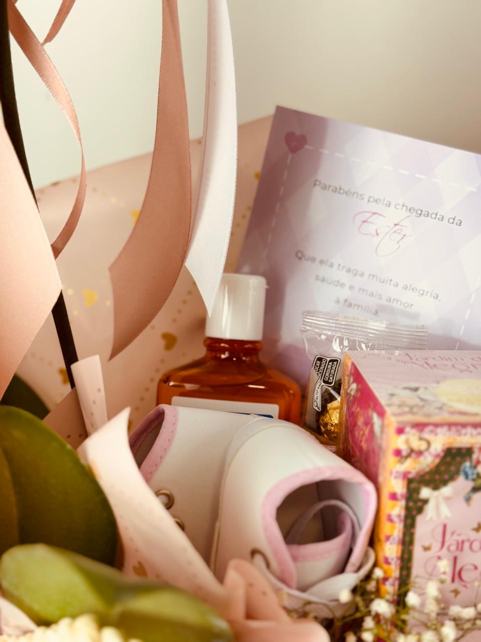 Tênis de Bebê (cor do tênis varia de acordo com a cor escolhida do seu kit! Exemplo: Presente rosa, cor do tênis: Branco ou Rosa)